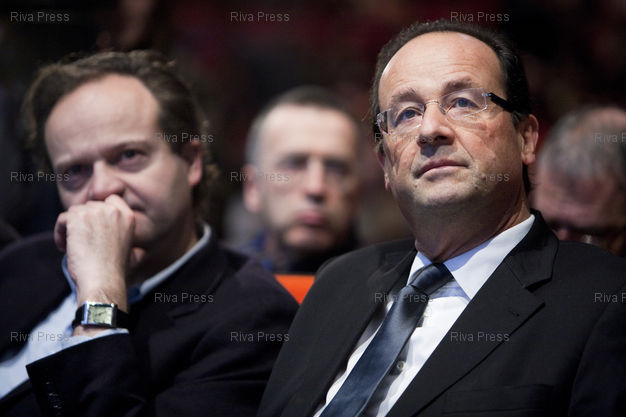 Légende : Paris, le 30 janvier 2011 - Francois Hollande (D) et Jean-Marc Germain (G) au rassemblement des secretaires de section du parti socialiste au Palais des congres.