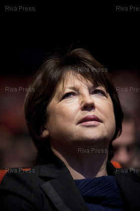Légende : Paris, le 30 janvier 2011 - Martine Aubry au rassemblement des secretaires de section du parti socialiste au Palais des congres.