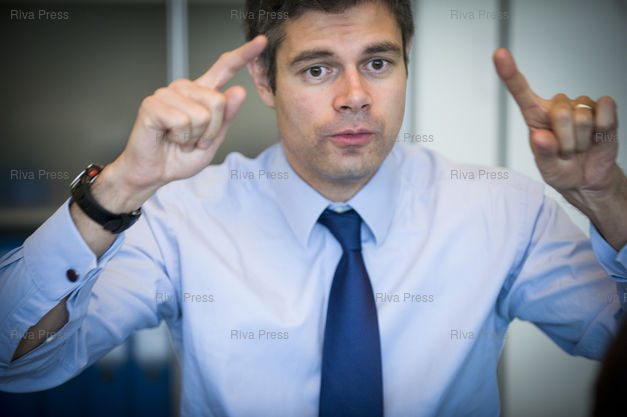 Légende : 10/12/2008 - PARIS, France - Laurent Wauquiez, secretaire d'Etat charge de l'Emploi, repond a une interview dans son bureau du ministere des finances a Bercy. /// French Junior Minister for Employment Laurent Wauquiez in his office. On December 10, 2008. ///