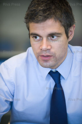 Légende : 10/12/2008 - PARIS, France - Laurent Wauquiez, secretaire d'Etat charge de l'Emploi, repond a une interview dans son bureau du ministere des finances a Bercy. /// French Junior Minister for Employment Laurent Wauquiez in his office. On December 10, 2008. ///