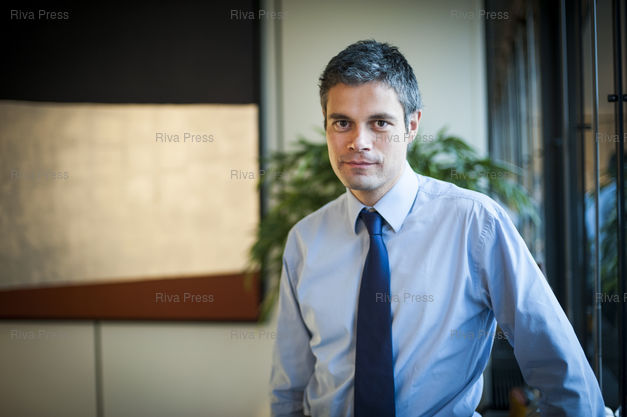 Caption : 10/12/2008 - PARIS, France - Laurent Wauquiez, secretaire d'Etat charge de l'Emploi, pose dans son bureau du ministere des finances a Bercy. /// French Junior Minister for Employment Laurent Wauquiez in his office. On December 10, 2008. ///