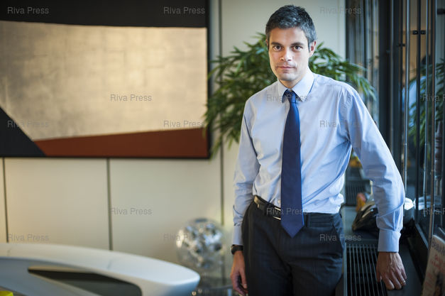 Caption : 10/12/2008 - PARIS, France - Laurent Wauquiez, secretaire d'Etat charge de l'Emploi, pose dans son bureau du ministere des finances a Bercy. /// French Junior Minister for Employment Laurent Wauquiez in his office. On December 10, 2008. ///