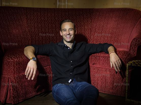 Légende : Joel Dicker pose dans le bar de l'hotel Bristol. Paris, FRANCE-7/03/2018
