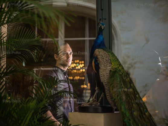 Légende : Joel Dicker pose dans le bar de l'hotel Bristol. Paris, FRANCE-7/03/2018