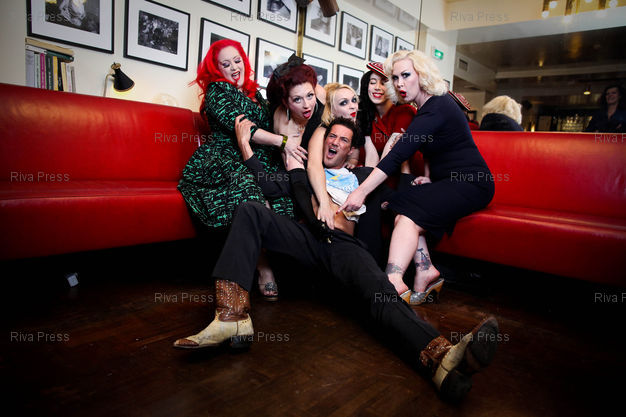 Légende : Les acteurs de "Tournee", posent a l'Hotel Amour. Paris, FRANCE-19/10/2010