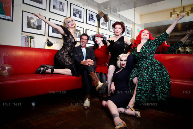 Légende : Les acteurs de "Tournee", posent a l'Hotel Amour. Paris, FRANCE-19/10/2010
