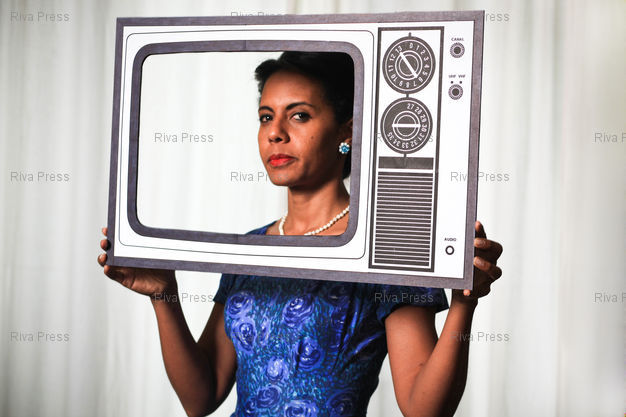Légende : Audrey Pulvar pose a Paris. Paris, FRANCE-11/02/2011