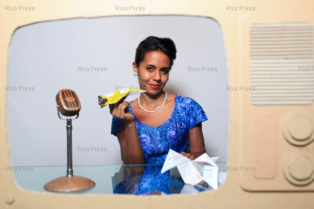 Légende : Audrey Pulvar pose a Paris. Paris, FRANCE-11/02/2011