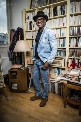 Légende : L'ecrivain Alain Mabanckou a Paris pour la sortie de son nouveau livre pendant l'ete 2018, "Les cigognes sont immortelles". Le 05/07/2018. /// The writer Alain Mabanckou in Paris on July 5, 2018. /// PHOTO Vincent Boisot