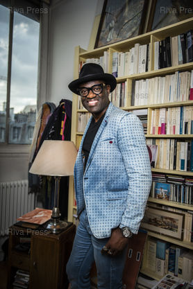 Légende : L'ecrivain Alain Mabanckou a Paris pour la sortie de son nouveau livre pendant l'ete 2018, "Les cigognes sont immortelles". Le 05/07/2018. /// The writer Alain Mabanckou in Paris on July 5, 2018. /// PHOTO Vincent Boisot