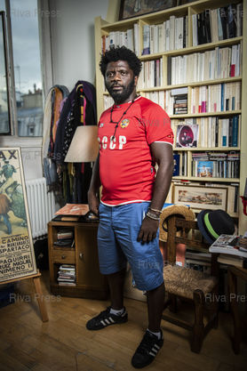 Légende : L'ecrivain Gauz a Paris pour la sortie de son nouveau livre pendant l'ete 2018, "Camarade Papa". Le 05/07/2018. /// The writer Gauz in Paris on July 5, 2018. /// PHOTO Vincent Boisot