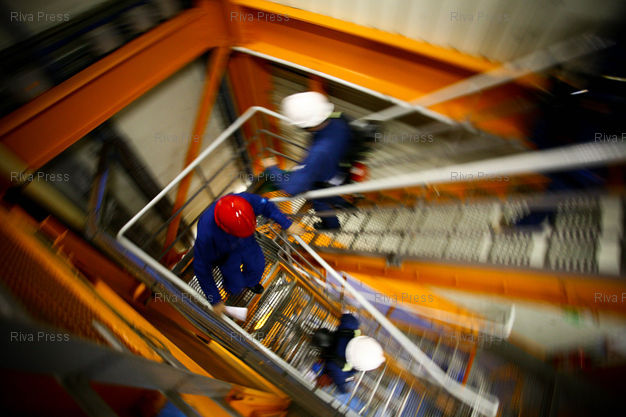 Légende : Les equipes de pompiers specialises de la centrale nucleaire de Saint-Laurent des eaux font un exercice d'entrainement. Saint-Laurent des eaux,FRANCE-10/01/2009