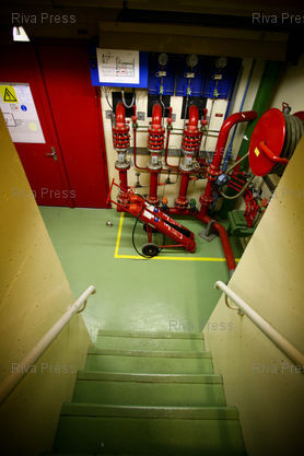 Légende : Les equipes de pompiers specialises de la centrale nucleaire de Saint-Laurent des eaux font un exercice d'entrainement. Saint-Laurent des eaux,FRANCE-10/01/2009