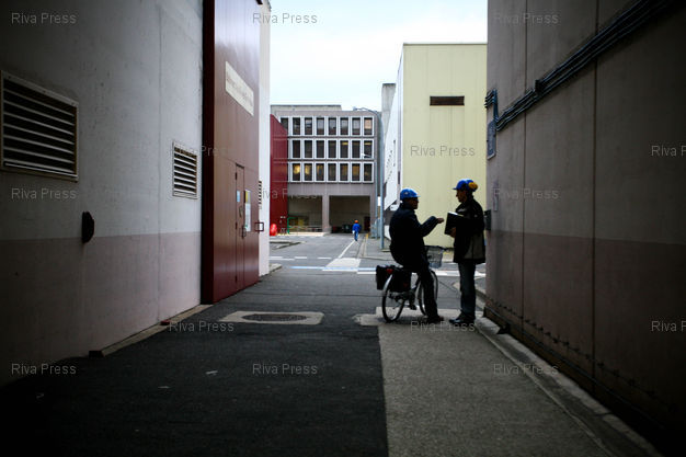 Légende : Les equipes de pompiers specialises de la centrale nucleaire de Saint-Laurent des eaux font un exercice d'entrainement. Saint-Laurent des eaux,FRANCE-10/01/2009