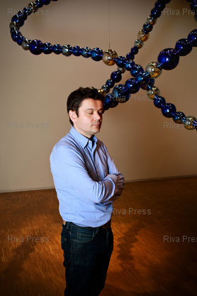 Légende : Jean-Michel Othoniel pose au centre Georges Pompidou dans la premiere grande restrospective retracant son parcours depuis 1987. Paris, FRANCE-1/03/2011