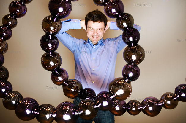 Légende : Jean-Michel Othoniel pose au centre Georges Pompidou dans la premiere grande restrospective retracant son parcours depuis 1987. Paris, FRANCE-1/03/2011