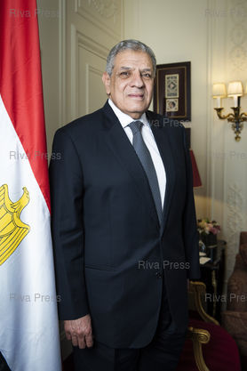 Légende : Le premier ministre egyptien Ibrahim Mahlab pose a l'hotel Intercontinental a Paris. Le 13/05/2015 /// Egyptian Prime Minister Ibrahim Mahlab poses at the Intercontinental Hotel in Paris. On May 13, 2015 /// PHOTO Vincent Boisot