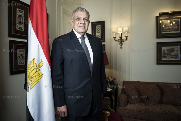 Légende : Le premier ministre egyptien Ibrahim Mahlab pose a l'hotel Intercontinental a Paris. Le 13/05/2015 /// Egyptian Prime Minister Ibrahim Mahlab poses at the Intercontinental Hotel in Paris. On May 13, 2015 /// PHOTO Vincent Boisot