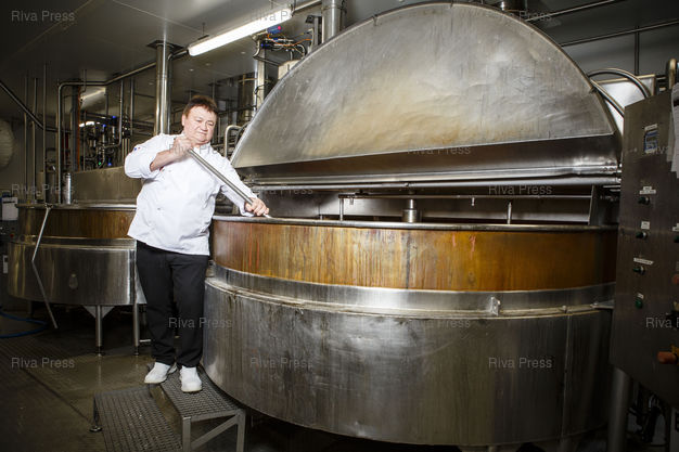 Légende : Virazeil, le 23 janvier 2018 - Portrait de Lucien Georgelin, dirigeant et fondateur de la societe qui porte son nom, numero 2 de la confiture en France. Ici devant un chaudron dans l'atelier de fabrication de son usine de Virazeil (Lot-Et-Garonne). PHOTO: Vincent NGUYEN / Riva Press