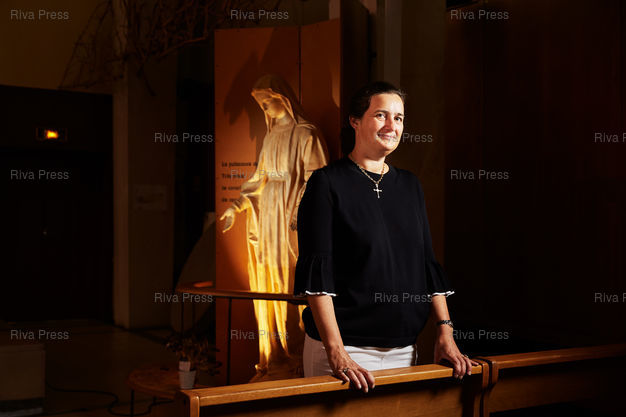 Légende : Ségolène Guignard, eglise Saint-Pierre du Gros-Caillou, Paris 7eme, le 16 juillet 2020. © Lucien Lung / Riva-Press