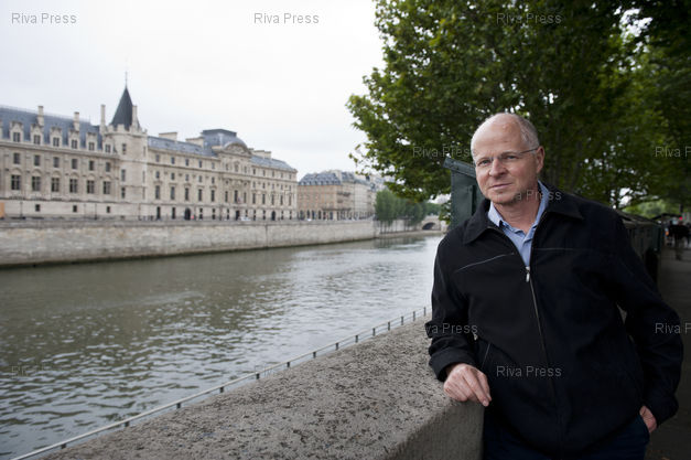 Légende : 06/06/2011 - PARIS, France - Noam Shalit, pere du soldat franco-israelien Gilad Shalit capture par le Hamas en juin 2006, pose devant le palais de justice de Paris. Il a depose une plainte en France visant l'organisation palestinienne pour enlevement et sequestratation. /// Noam Shalit, father of captive israeli soldier Gilat Shalit, poses in front of Paris court of justice. PHOTO Vincent Boisot/Riva Press pour Le Figaro