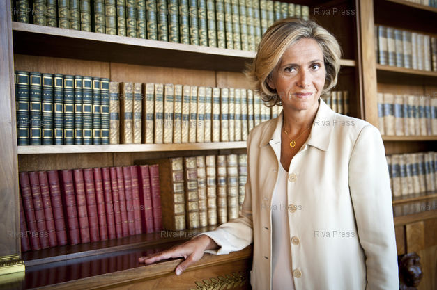 Légende : 25/08/2011 - PARIS, France - La ministre du budget Valerie Pecresse pose dans son bureau du ministere de l'economie et des finances a Bercy. /// The budget minister Valerie Pecresse poses in his office. PHOTO Vincent Boisot/Riva Press