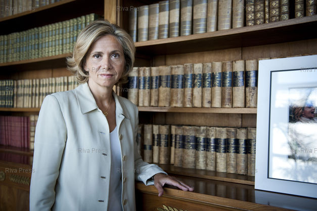 Légende : 25/08/2011 - PARIS, France - La ministre du budget Valerie Pecresse pose dans son bureau du ministere de l'economie et des finances a Bercy. /// The budget minister Valerie Pecresse poses in his office. PHOTO Vincent Boisot/Riva Press