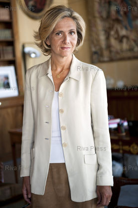Légende : 25/08/2011 - PARIS, France - La ministre du budget Valerie Pecresse pose dans son bureau du ministere de l'economie et des finances a Bercy. /// The budget minister Valerie Pecresse poses in his office. PHOTO Vincent Boisot/Riva Press