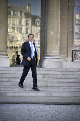 Légende : 26/09/2008 - PARIS, France - Eric Besson (secretaire d'Etat charge de la prospective) sort du conseil des ministres au palais de l'Elysee.