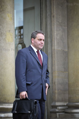 Légende : 07/10/2008 - PARIS, France - Xavier Bertrand (ministre du travail) sort du conseil des ministres au palais de l'Elysee.
