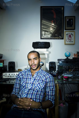 Légende : Paris, le 17 aout 2009 - Portrait de DJ Mehdi, chez lui, devant son home studio. PHOTO: Vincent NGUYEN / Riva Press