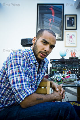 Légende : Paris, le 17 aout 2009 - Portrait de DJ Mehdi, chez lui, devant son home studio. PHOTO: Vincent NGUYEN / Riva Press