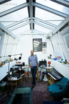 Légende : Paris, le 17 aout 2009 - Portrait de DJ Mehdi, chez lui, devant son home studio. PHOTO: Vincent NGUYEN / Riva Press