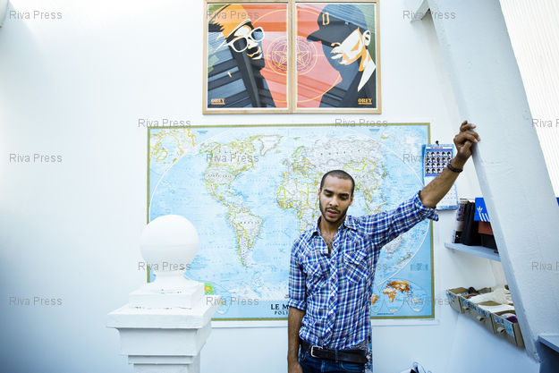 Légende : Paris, le 17 aout 2009 - Portrait de DJ Mehdi, chez lui, devant son home studio. PHOTO: Vincent NGUYEN / Riva Press