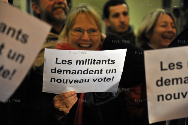 Des supporters de Segolene Royal manifestent devant le batiment pour demander un nouveau vote des militants, suite aux soupcons de fraude autour du precedent scrutin.