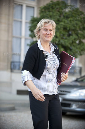 Nadine Morano leaves the weekly cabinet meeting at the Elysee palace.