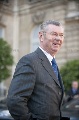 Légende : 14/10/2009 - PARIS, France - Henri de Raincourt, ministre chargé des relations avec le parlement, sort du conseil des ministres au palais de l'Elysee.