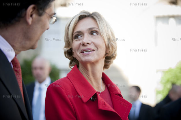 Légende : 14/10/2009 - PARIS, France - Valérie Pécresse, ministre de l'enseignement supérieur et de la recherche, et Patrick Devedjian, ministre chargé du plan de relance, sortent du conseil des ministres au palais de l'Elysee.