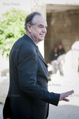 Légende : 14/10/2009 - PARIS, France - Frédéric Mitterrand, ministre de la culture, sort du conseil des ministres au palais de l'Elysee.