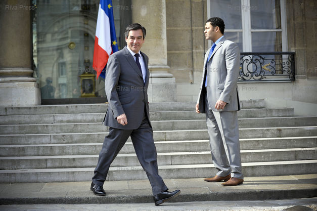 Francois Fillon (prime minister) leaves the Elysee presidential Palace after the weekly cabinet meeting.