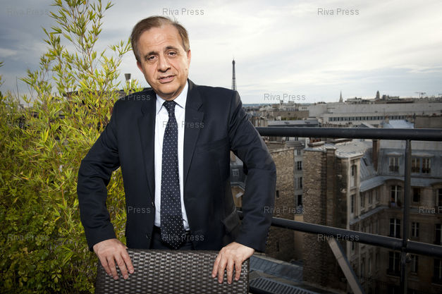Légende : 25/08/2011 - PARIS, France - Roger Karoutchi pose au siege de l'UMP, rue de la Boetie. /// Roger Karoutchi poses on the roof of the headquarter of UMP Party. PHOTO Vincent BOISOT/Riva Press