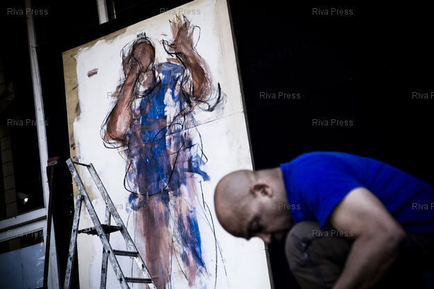 Légende : 29/09/2011 - Antananarivo, MADAGASCAR - Performance artistique du peintre Paul Bloas, du danseur Bernardo Montet et du guitariste Joel Rabesolo. PHOTO : RIJASOLO / RIVA PRESS