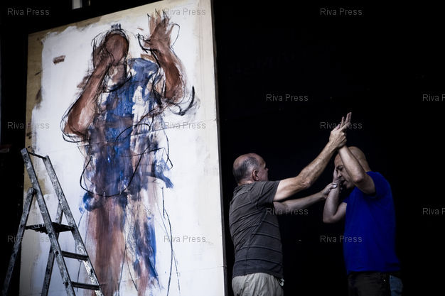 Légende : 29/09/2011 - Antananarivo, MADAGASCAR - Performance artistique du peintre Paul Bloas, du danseur Bernardo Montet et du guitariste Joel Rabesolo. PHOTO : RIJASOLO / RIVA PRESS