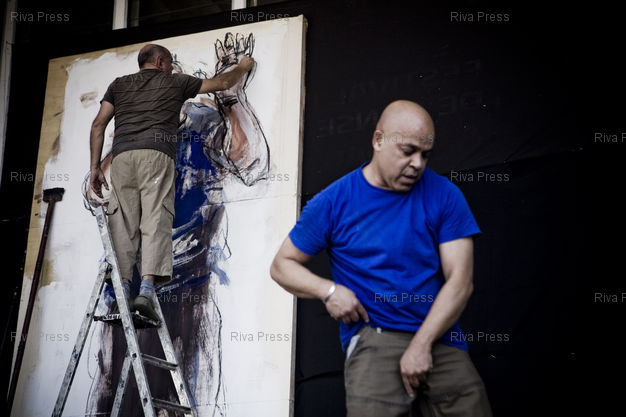Légende : 29/09/2011 - Antananarivo, MADAGASCAR - Performance artistique du peintre Paul Bloas, du danseur Bernardo Montet et du guitariste Joel Rabesolo. PHOTO : RIJASOLO / RIVA PRESS