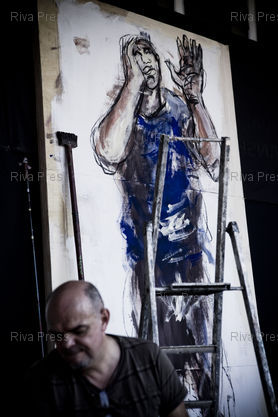 Caption : 29/09/2011 - Antananarivo, MADAGASCAR - Performance of painter Paul Bloas, dancer Bernardo Montet and guitarist Joel Rabesolo at Alliance Française of Antananarivo. PHOTO : RIJASOLO / RIVA PRESS