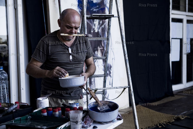 Légende : 29/09/2011 - Antananarivo, MADAGASCAR - Performance artistique du peintre Paul Bloas, du danseur Bernardo Montet et du guitariste Joel Rabesolo. PHOTO : RIJASOLO / RIVA PRESS
