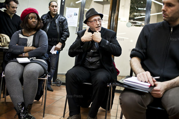 Légende : Saint-Denis, le 9 decembre 2011 - Assemblee citoyenne du Front de Gauche de Saint-Denis sur le theme du travail, a la Bourse du travail de Saint-Denis. PHOTO: Vincent NGUYEN / Riva Press