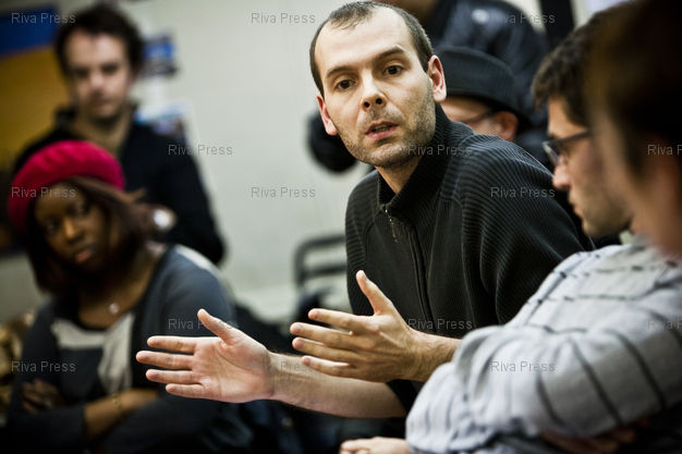 Légende : Saint-Denis, le 9 decembre 2011 - Assemblee citoyenne du Front de Gauche de Saint-Denis sur le theme du travail, a la Bourse du travail de Saint-Denis. PHOTO: Vincent NGUYEN / Riva Press
