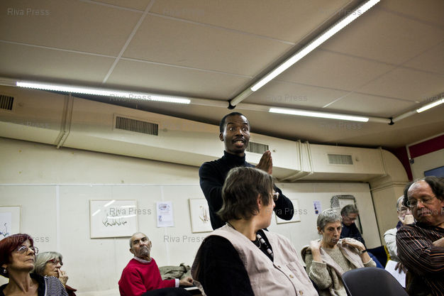 Légende : Saint-Denis, le 9 decembre 2011 - Assemblee citoyenne du Front de Gauche de Saint-Denis sur le theme du travail, a la Bourse du travail de Saint-Denis. PHOTO: Vincent NGUYEN / Riva Press