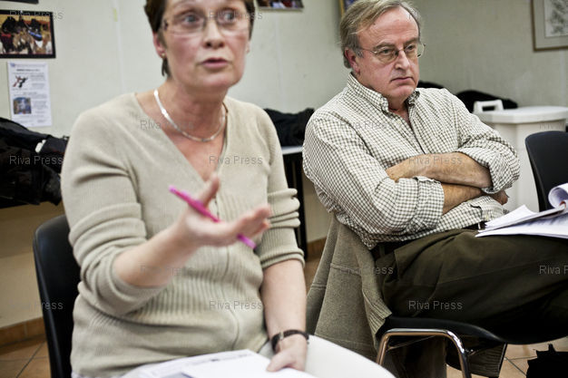 Légende : Saint-Denis, le 9 decembre 2011 - Assemblee citoyenne du Front de Gauche de Saint-Denis sur le theme du travail, a la Bourse du travail de Saint-Denis. Avec la participation du syndicaliste Claude Debons (D). PHOTO: Vincent NGUYEN / Riva Press
